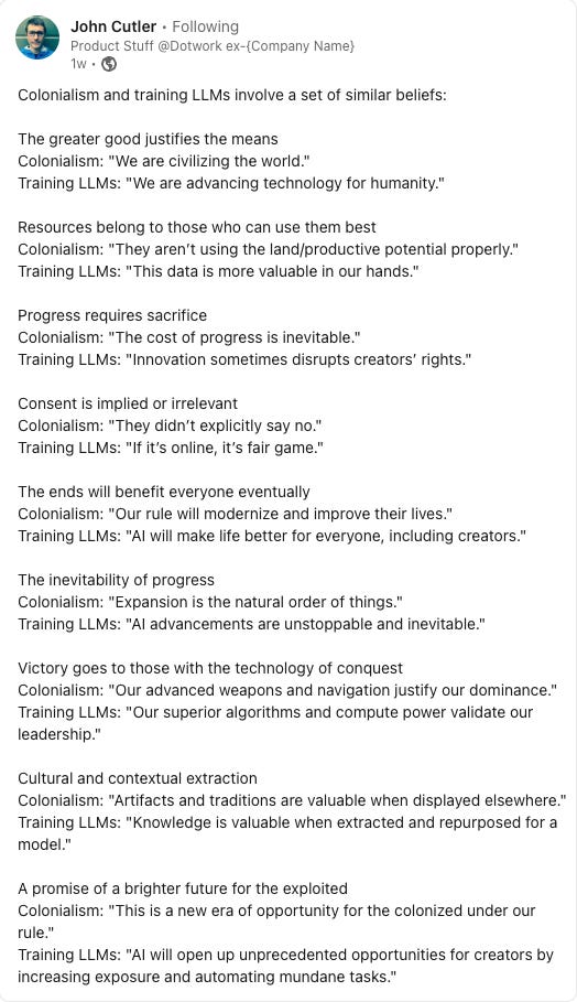 Here’s a great post from John Cutler about attitudes around LLMs/GenAI. The reason we learn from history is so that we can try really hard not to repeat it. Unfortunately, especially in the US, that’s in danger too. (All about book bans here.)